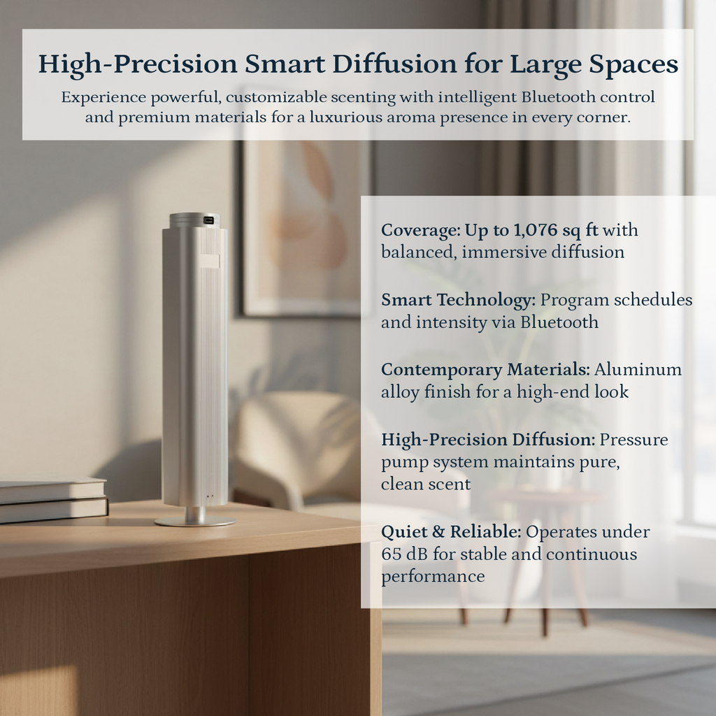 Wide Coverage: Scent spaces up to 1,076 ft² with balanced, immersive diffusion.