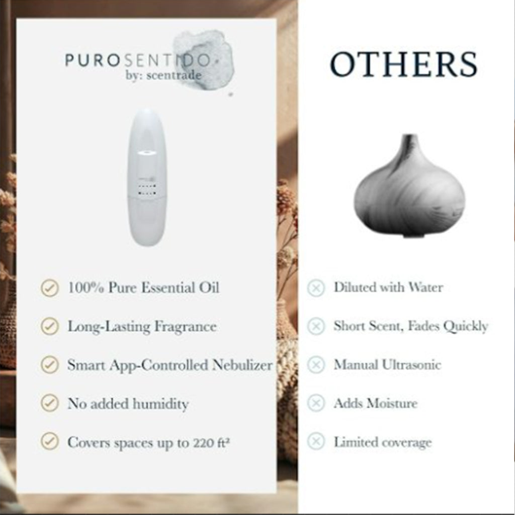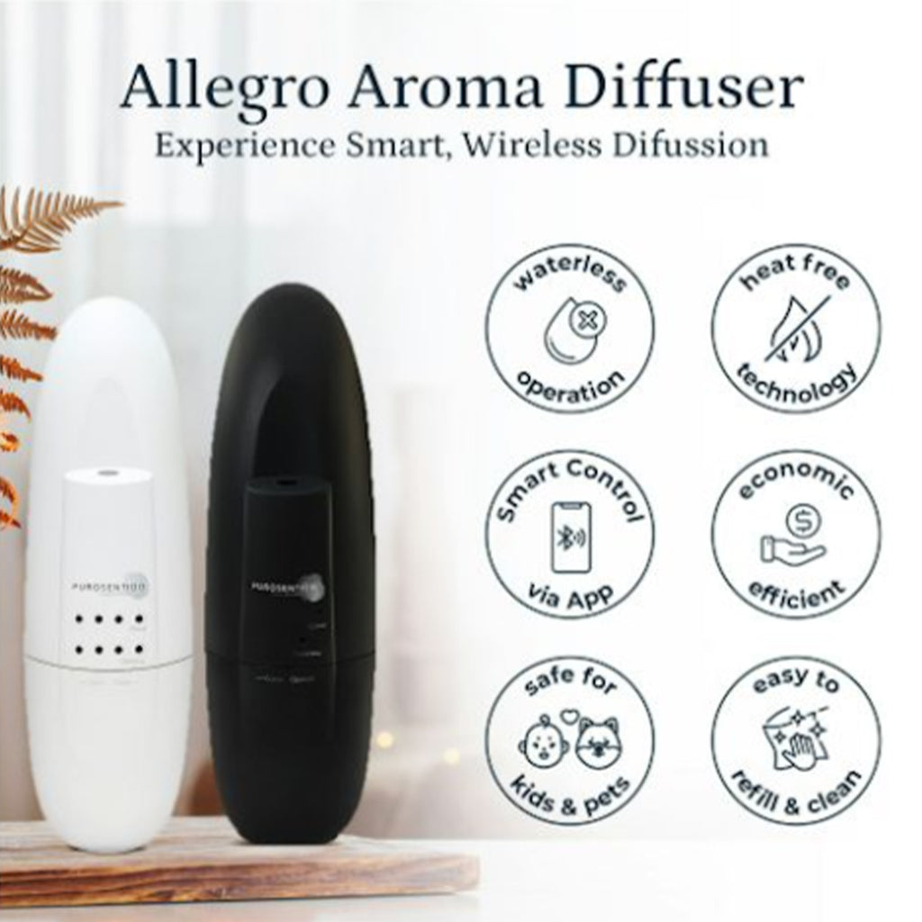 The Allegro diffuser blends naturally into any space, adding a refined and contemporary touch. Its precise diffusion creates a uniform and enveloping olfactory experience. Its minimalist design and silent operation make it an ideal solution for modern interiors, offices, creative studios, and bedrooms.