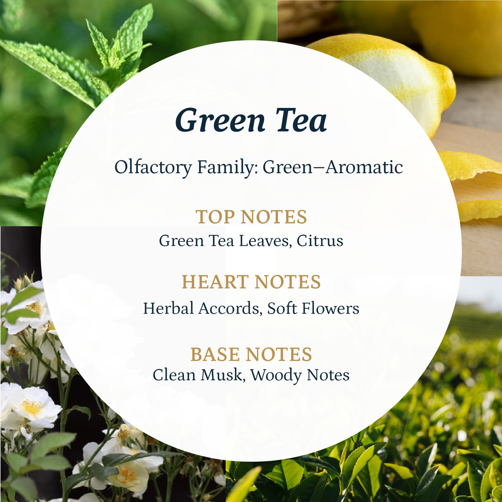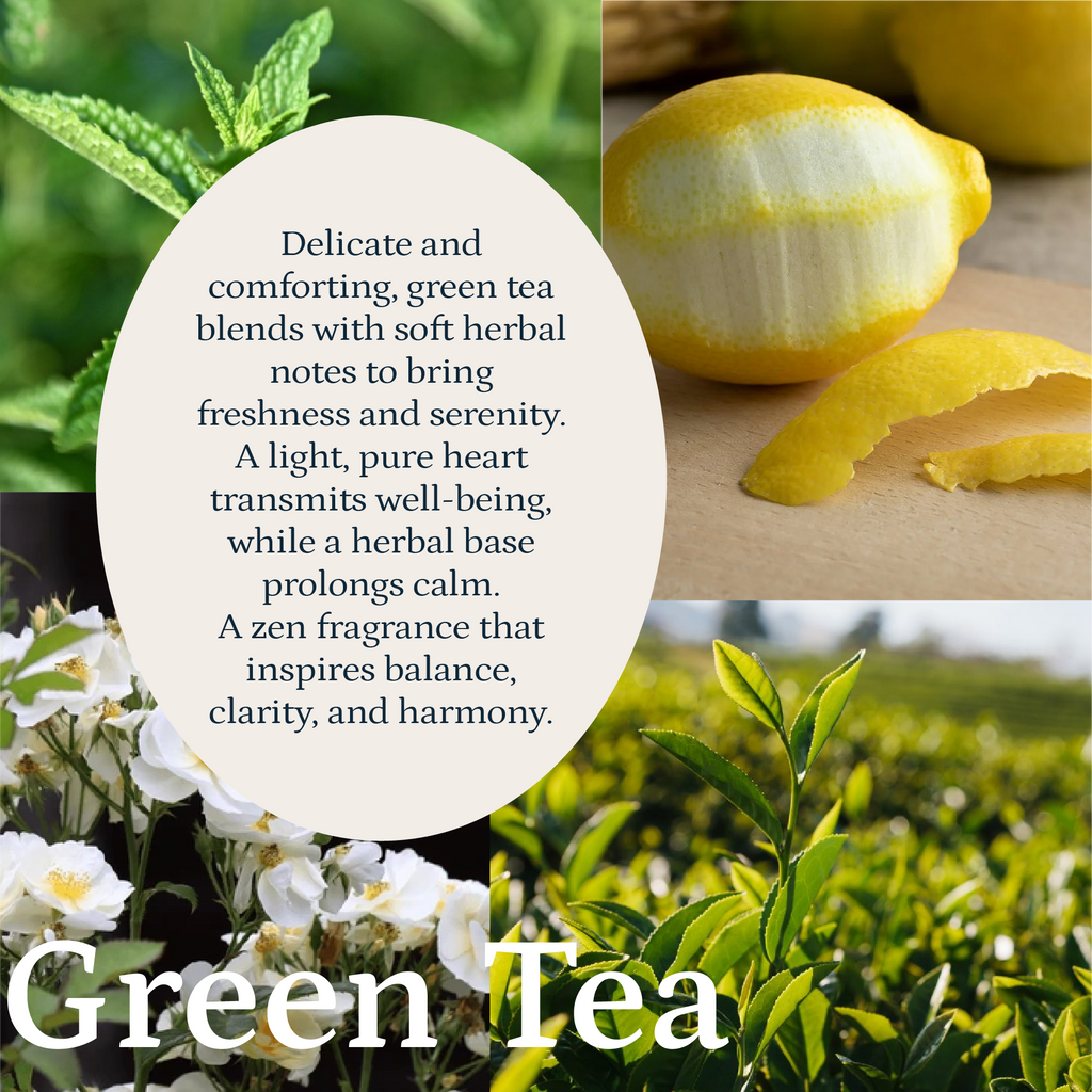 Overall, the fragrance of green tea is often perceived as clean, natural, and revitalizing, making it a popular choice for both personal care products and home fragrances. It can evoke images of serene tea gardens, lush foliage, and moments of quiet contemplation.