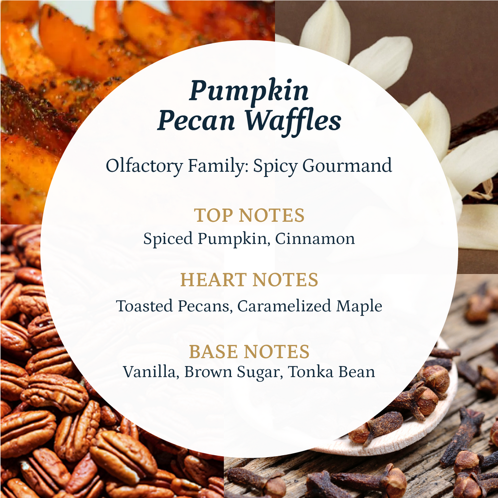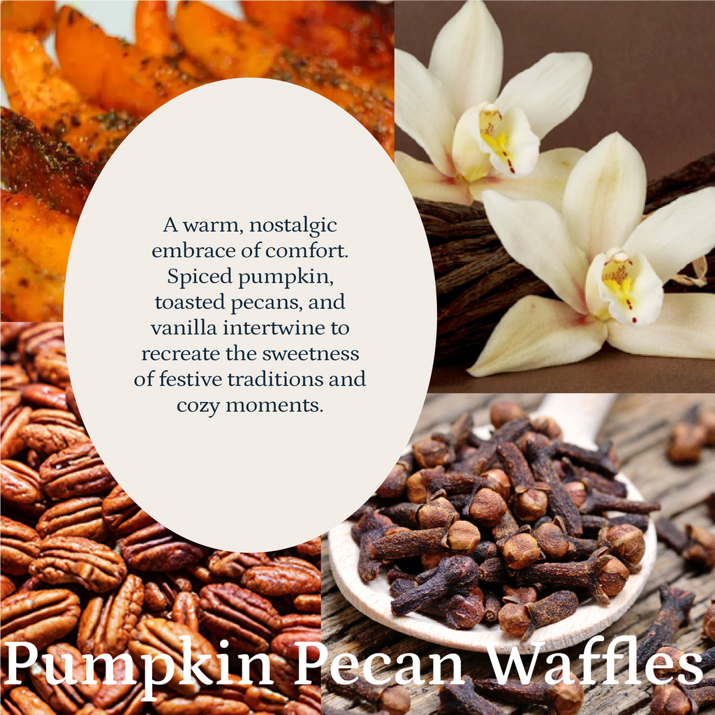 Inspiration / mood The Pumpkin Pecan Waffle fragrance is the heartwarming feeling of autumn and the mood it creates is one of comfort, nostalgia, and indulgence in the rich, delicious scents of the season.